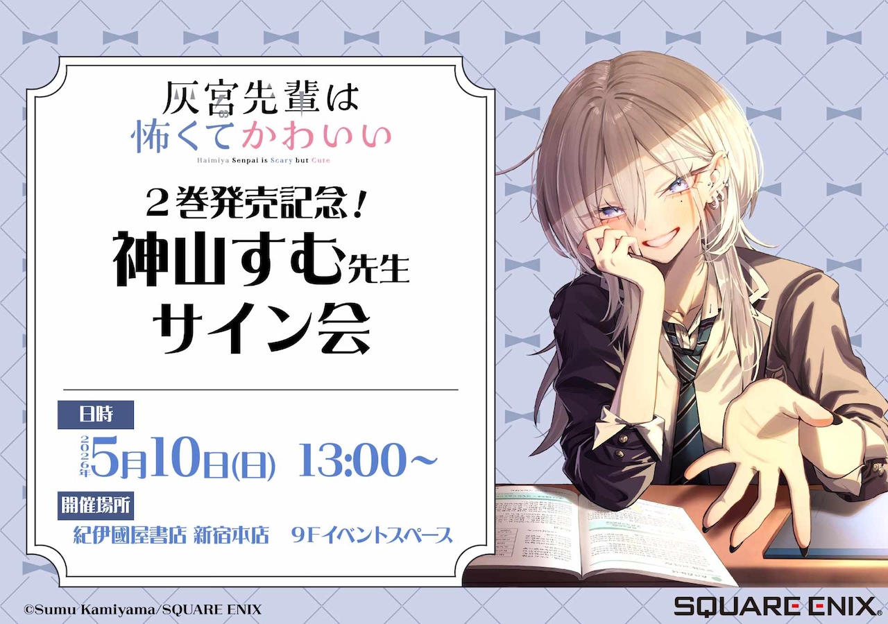 漫画《灰宫前辈既可怕又可爱》为庆祝单行本第2卷发售,将举办作者神山すむ的签名会。